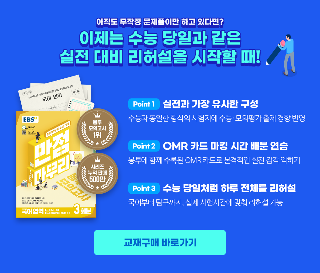 EBS 봉투모의고사 시리즈와 함께 실전 감각 익히면서 수능까지 가보자고!