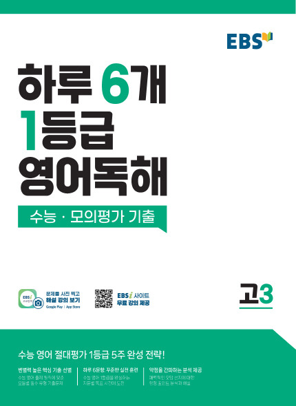 수능 영어 절대평가 1등급 5주 완성 핵심 전략! 영어 1등급을 목표로 하는 고3 학생을 위한 기출 유형서 전국연합학력평가 최근 7개년 기출문제 중 변별력이 높은 핵심 기출 선별 - 최근 8개년 문항 중 등급을 가르는 최고 오답률 유형을 중심으로한 수능 영어 출제 원칙에 맞춘 모듈별 필수 유형 기출문제 하루 6문항, 5주간 꾸준한 실전 훈련 - 수능 영어 1등급을 완성하는 지문별 목표 시간에 도전! 약점을 간파하는 분석 제공 - 매력적인 오답 선지에 대한 함정 포인트 분석과 해설 EBS 고교사이트(ebsi.co.kr)와 EBSi 앱에서 무료 강의와 문제별 해설 강의를 확인할 수 있습니다.